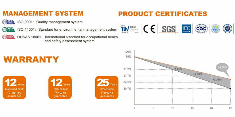 • Junction box: IP67 protection level, heat dissipation, quality diode ensures module running safety.