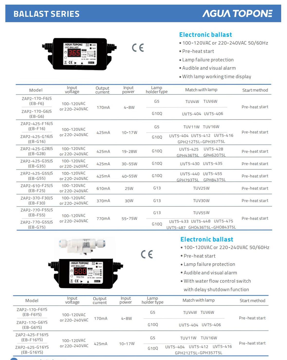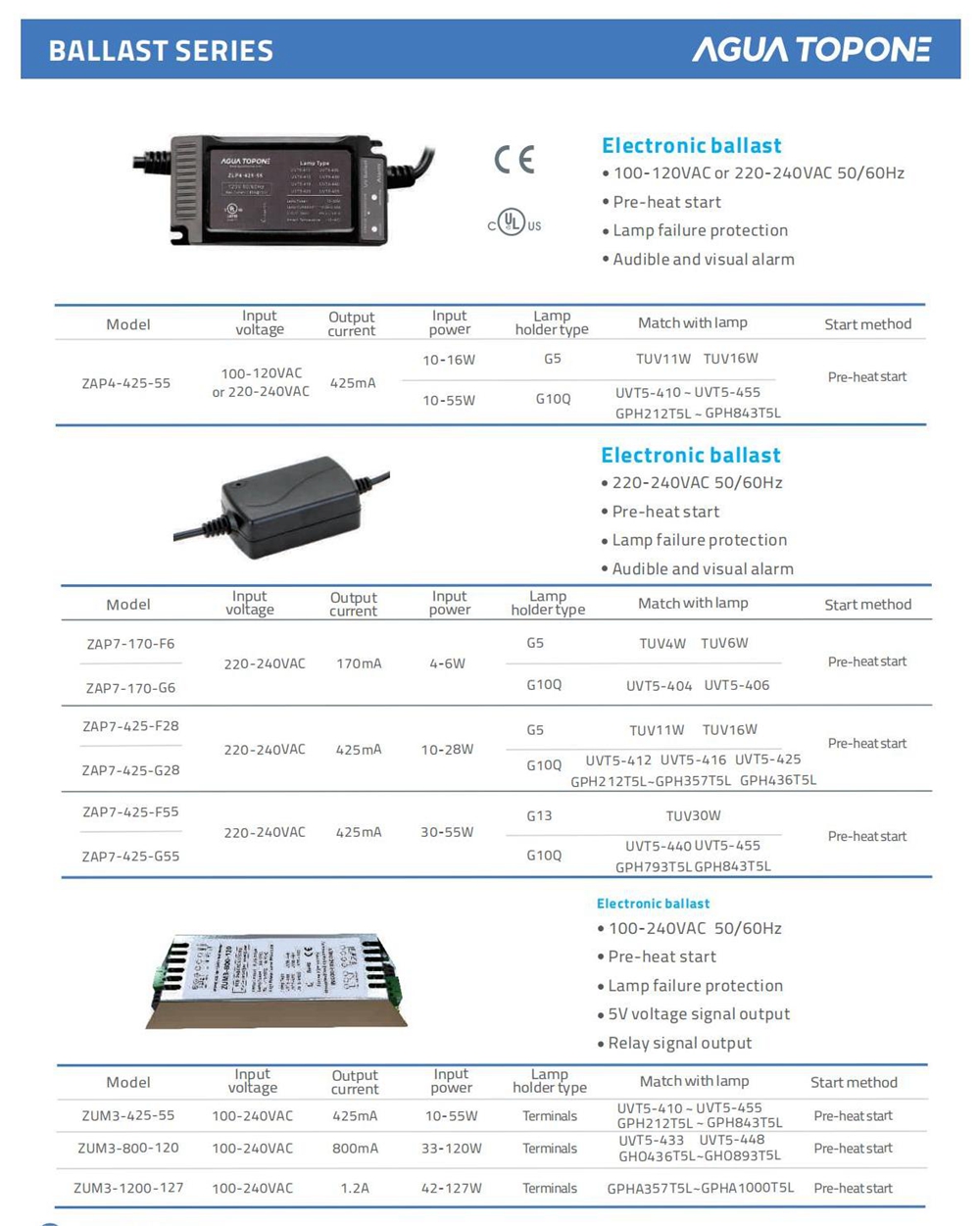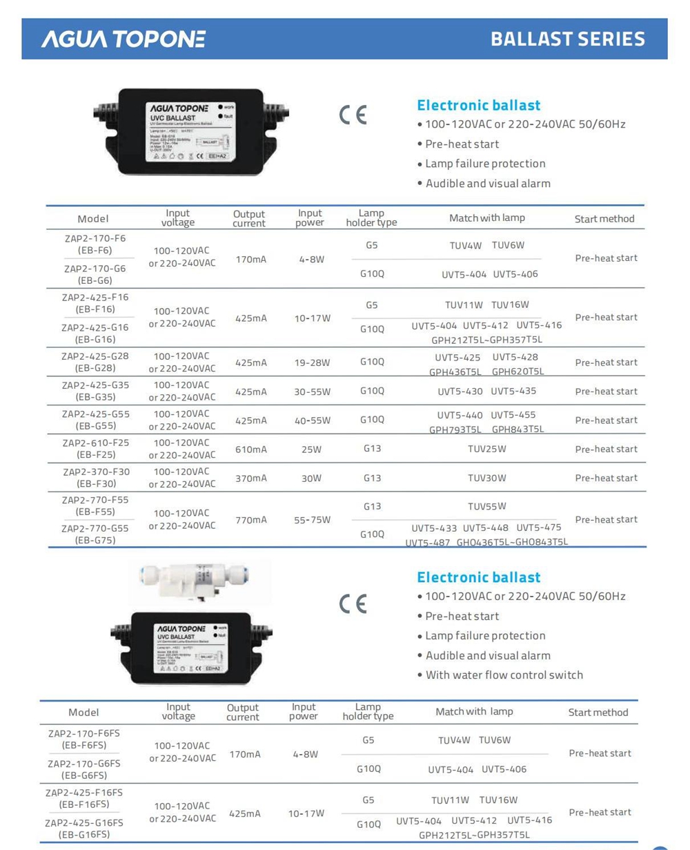 | Accessories | Electronic Ballast for UV Lamps |