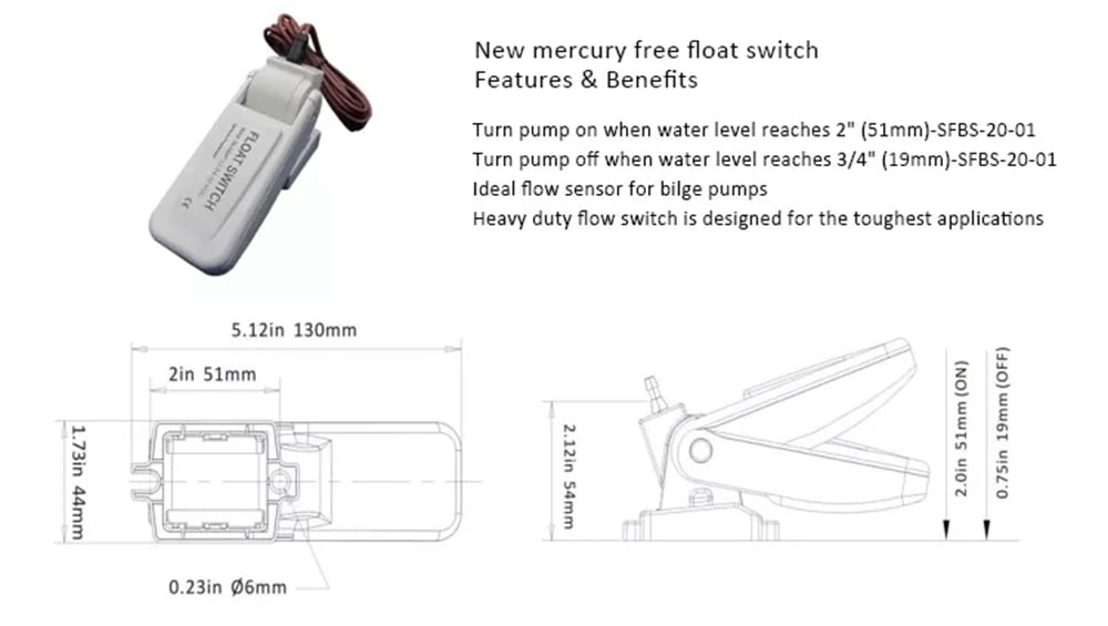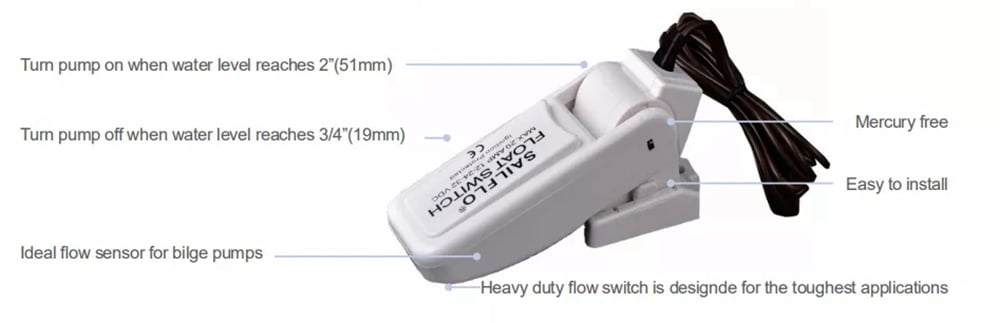 • Suitable for 12V/24V bilge pumps, with a maximum of 20 Amps.